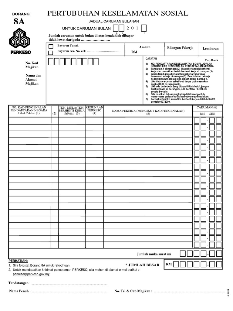 Related : Jadual Caruman Perkeso 2017 Pdf : Borang pertubuhan keselamatan sosial jadual caruman bulanan 8a bayaran tunai..